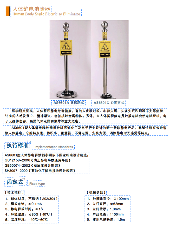 AS6601型人體靜電釋放器是針對石油化工及電子行業(yè)設計的新一代除靜電產品。